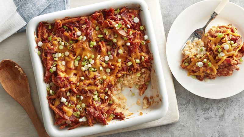 Heat oven to 350°F. Spray 8-inch square (2-quart) glass baking dish with cooking spray.